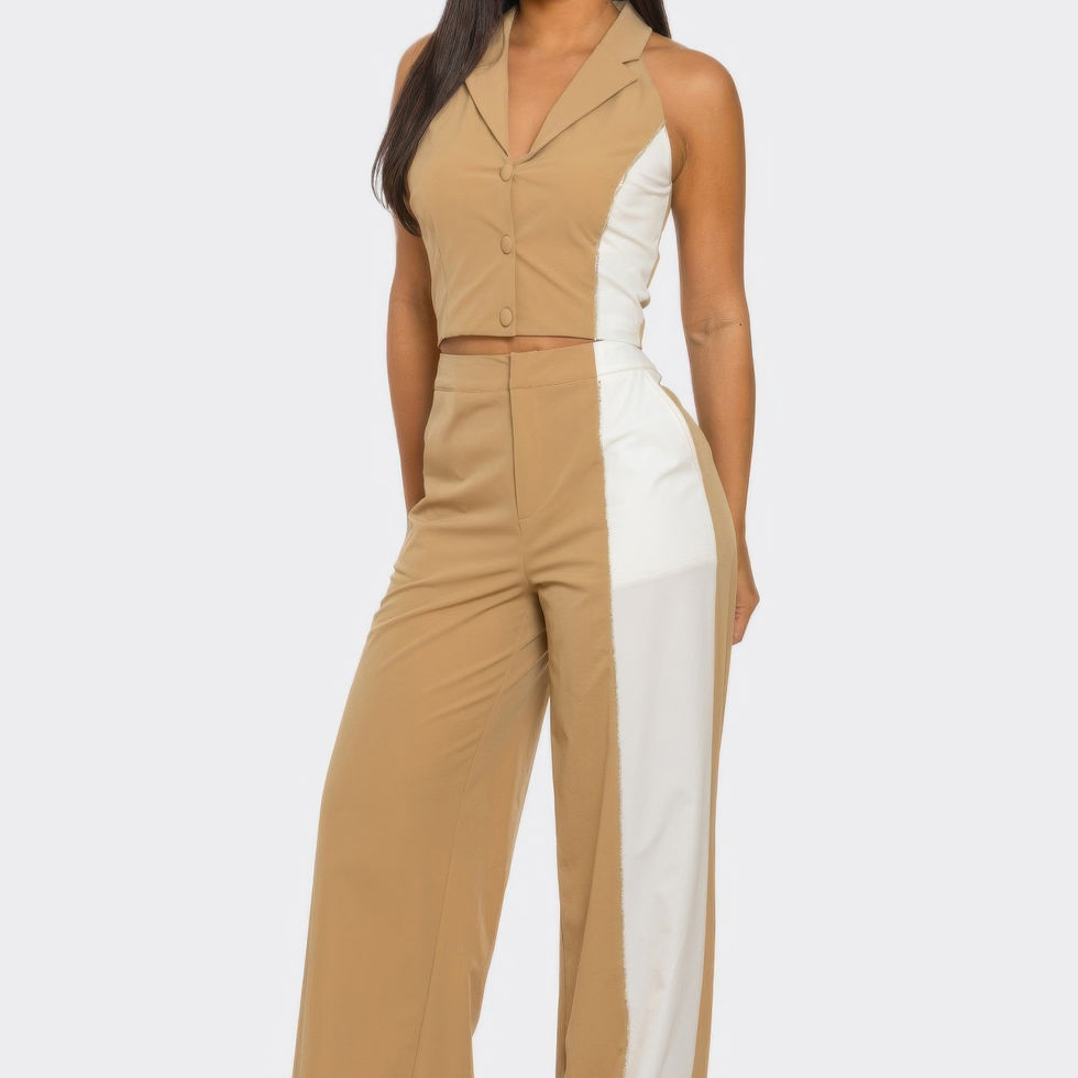 Elevate your everyday style with this chic 2-piece color block set, featuring a striking two-tone top and sleek straight-leg pants. Crafted from a smooth blend of 90% polyester and 10% spandex, this set offers a comfortable, flattering fit with just the right amount of stretch. The modern color-block design adds a bold, contemporary twist, making it perfect for both work and weekend wear. Pair the pieces together for a coordinated look or mix and match to create versatile outfit options. Whether you're headed to brunch or running errands, this set ensures you'll look polished and put-together with minimal effort.