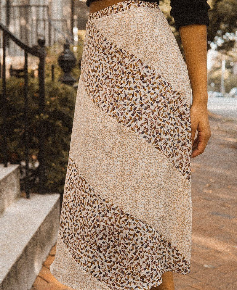 Why Choose Floral-Print Woven Midi Skirt in Taupe?