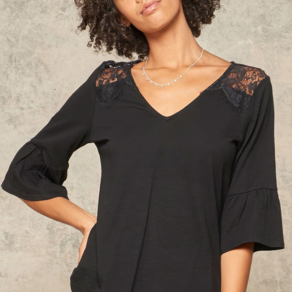Experience the perfect blend of comfort and feminine allure. Our knit top sets itself apart with the delicate floral eyelash lace and the flattering deep V neckline. It's not just a top; it's a fashion statement that adds a touch of romance to your wardrobe.