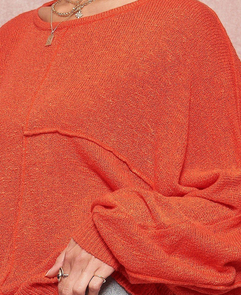 Upgrade your winter wardrobe with our "A Solid Knit Sweater," available in sizes S, M, and L. This cozy knit sweater features a round neckline, long dolman sleeves, exposed seam detailing, ribbed neckline, cuffs, and hem, and a loose fit for a stylish and comfortable look.