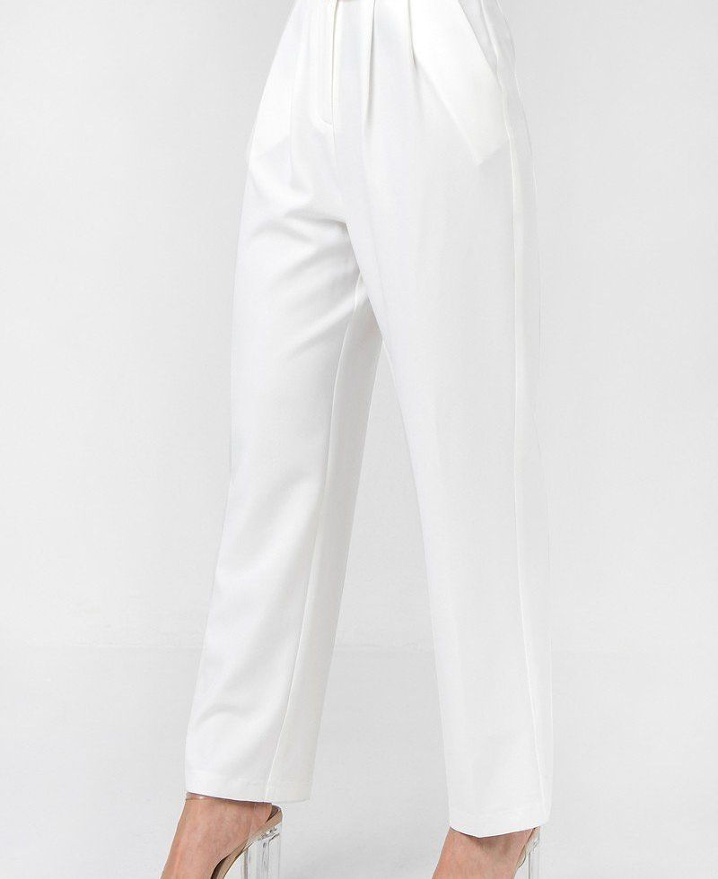 Elevate your wardrobe with our Solid Pant featuring a Paperbag Waist and Rattan Buckle Belt in Off White. Add it to your cart now for a fashionable and versatile piece that effortlessly combines style and comfort!