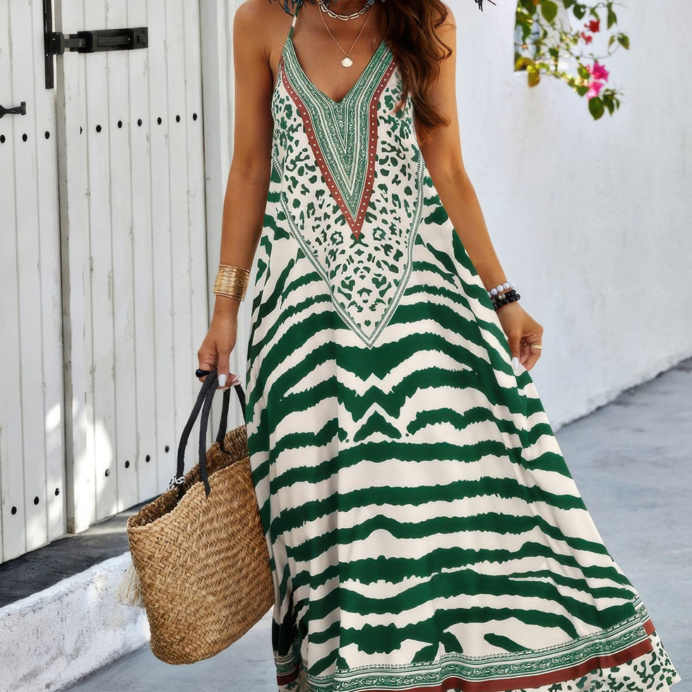 Animal Print Halter Deep V Ruffle Maxi Dress