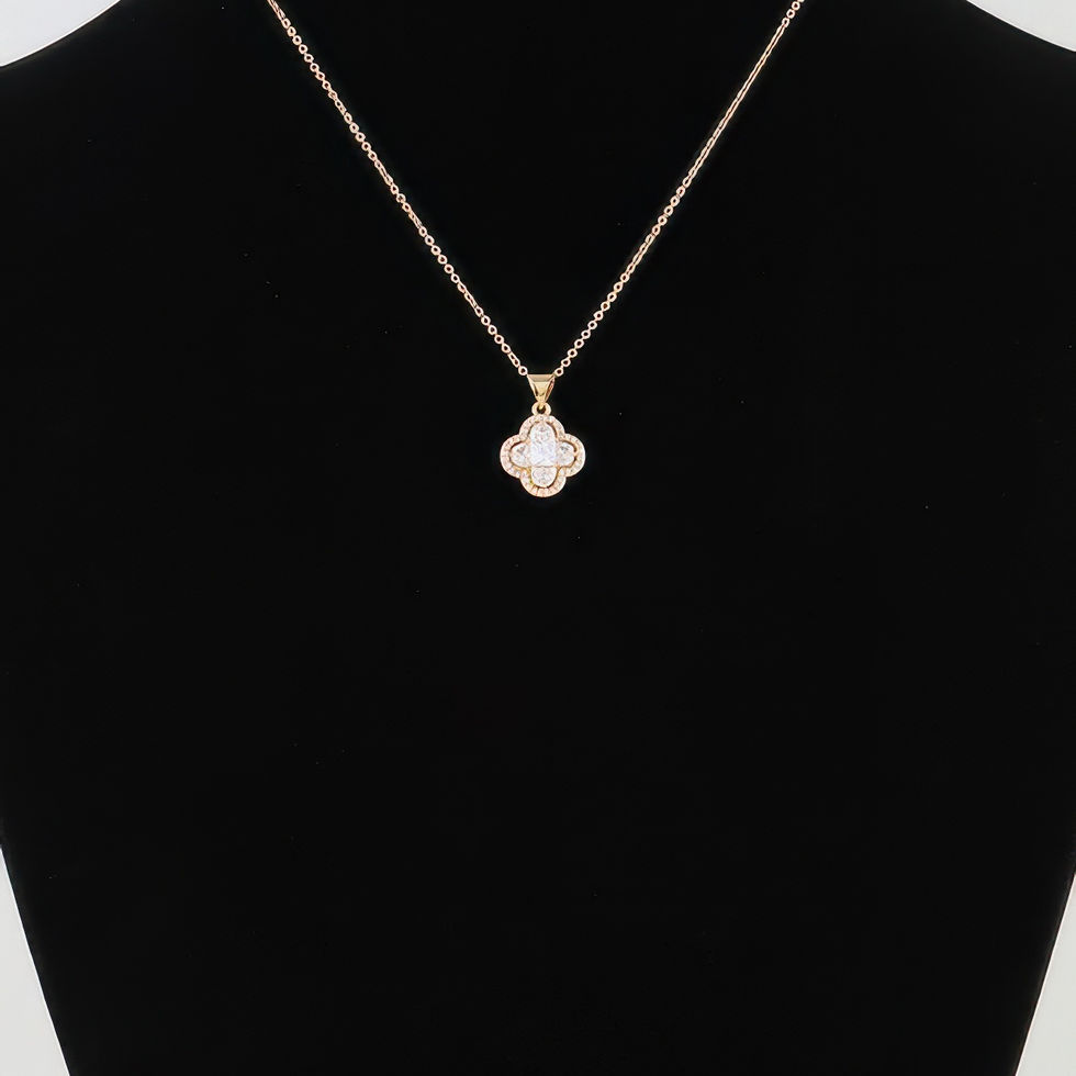 Design: The necklace features a clover-shaped pendant embellished with clear cubic zirconia stones, offering a stunning sparkle. The simple yet elegant chain complements the pendant, creating a balanced and timeless look.