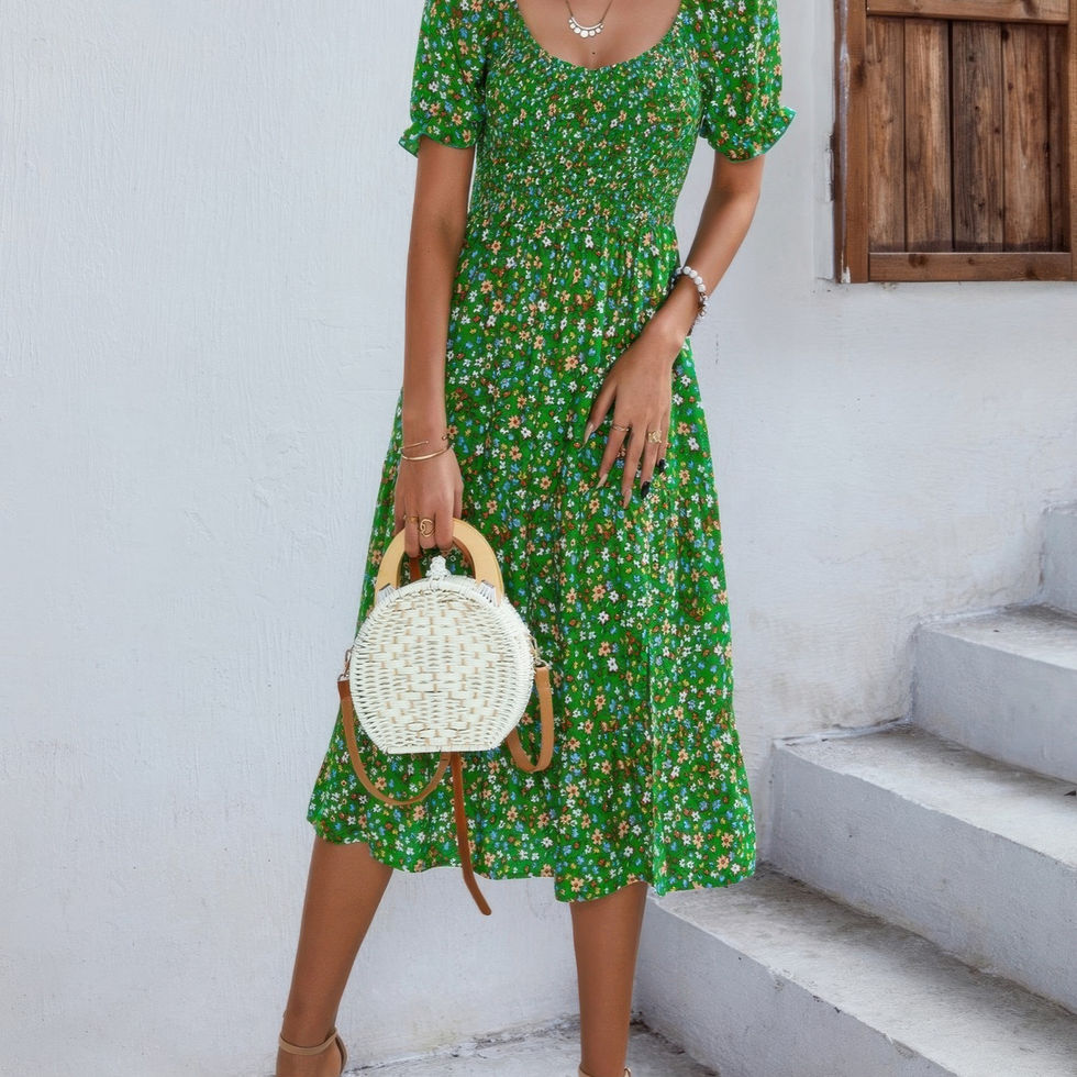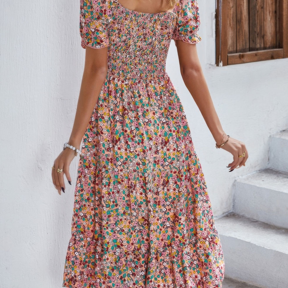 Capture the essence of carefree elegance with this Bohemia floral puff sleeve dress. Made from 100% viscose, it offers a soft, breathable feel that’s perfect for warm-weather wear. The high waistline flatters your figure while the flounce sleeves and puffed shoulders add romantic volume and movement. Adorned with a vibrant floral print, this dress brings a boho-inspired vibe to any occasion. Ideal for vacations, weekend outings, or relaxed everyday moments, it’s a standout piece you’ll reach for again and again.