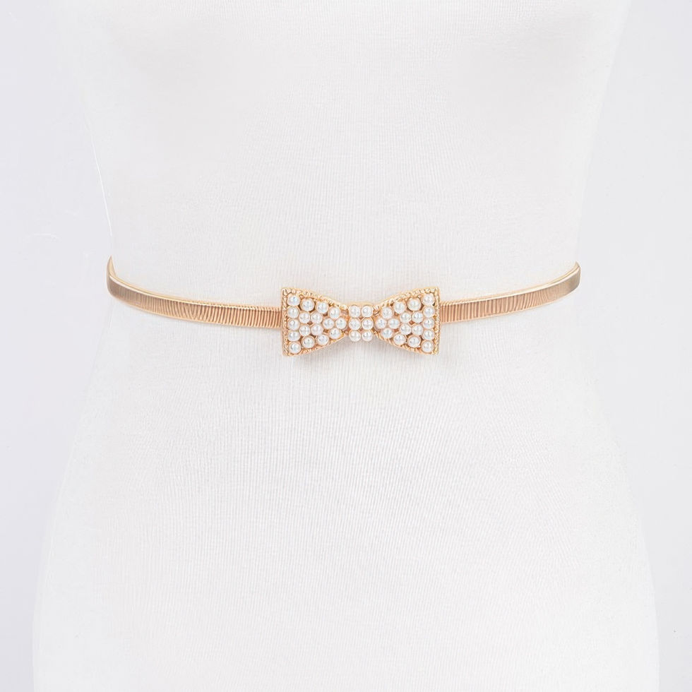 Delicate and feminine, the Bow Stretch Belt offers the perfect blend of charm and function. Featuring a sleek bow accent at the center, this accessory adds a polished finish to both casual and dressy looks. Designed with an elastic stretch band and crafted with durable iron detailing, it ensures a snug, comfortable fit throughout the day. Whether cinching a flowy dress or enhancing a tailored silhouette, this belt brings a graceful touch to your outfit. A versatile piece that effortlessly elevates any look.