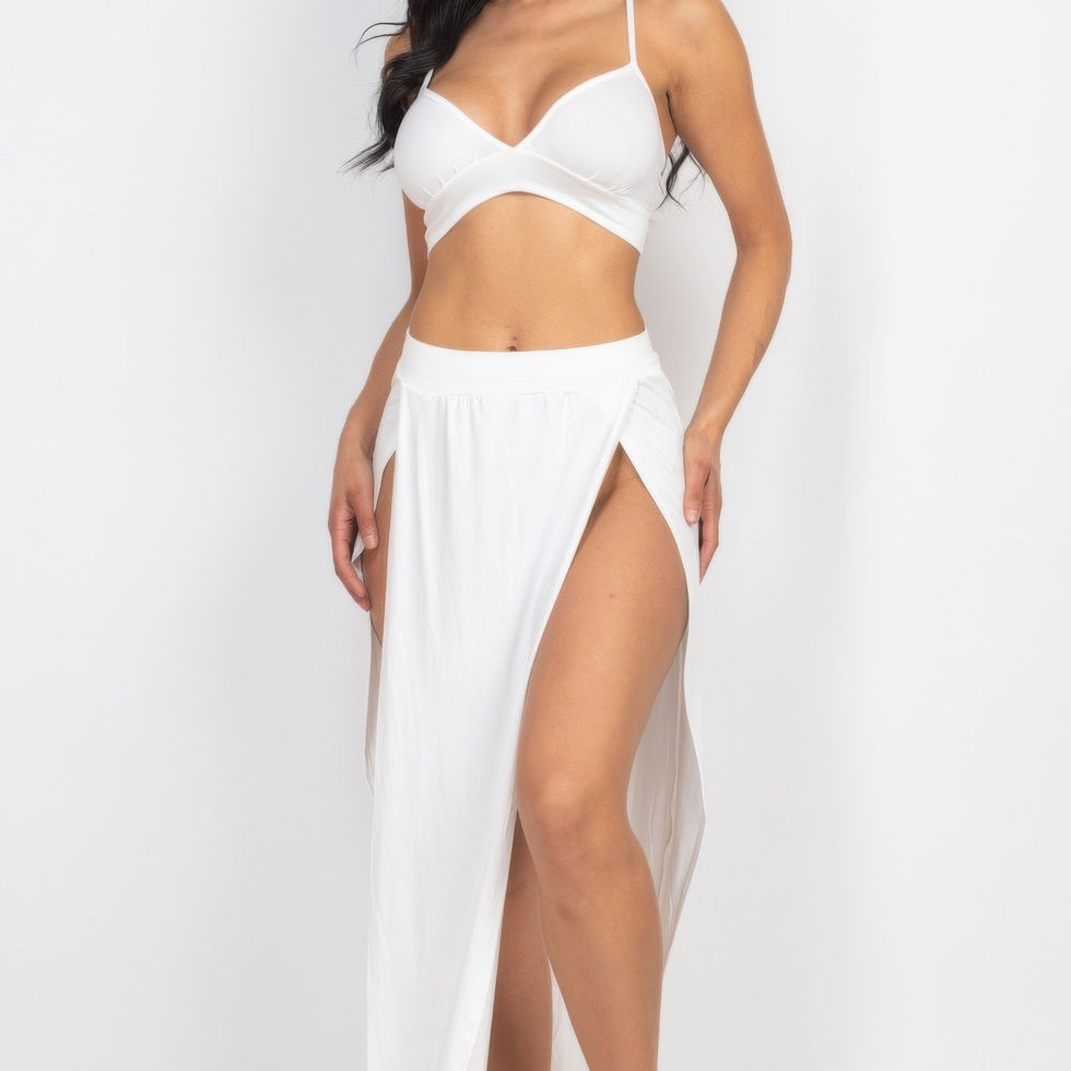 Get ready to make a bold statement with our Bra Top & Side Slit Maxi Skirt. Add it to your cart now and enjoy a perfect blend of fashion, comfort, and confidence!