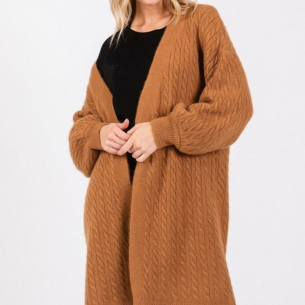 Cozy up in timeless style with the Cable Knit Cardigan, a must-have layer that combines comfort and sophistication. Crafted with an open knit design, this cardigan adds texture and warmth without feeling heavy. The generous size of 31.5 by 21.5 inches offers a relaxed, flattering fit, perfect for layering over everything from tees to blouses. Made from a soft blend of acrylic, polyester, and nylon, it delivers both warmth and a luxurious feel. Whether you're lounging at home or heading out, this cardigan brings effortless charm and versatility to your everyday wardrobe.