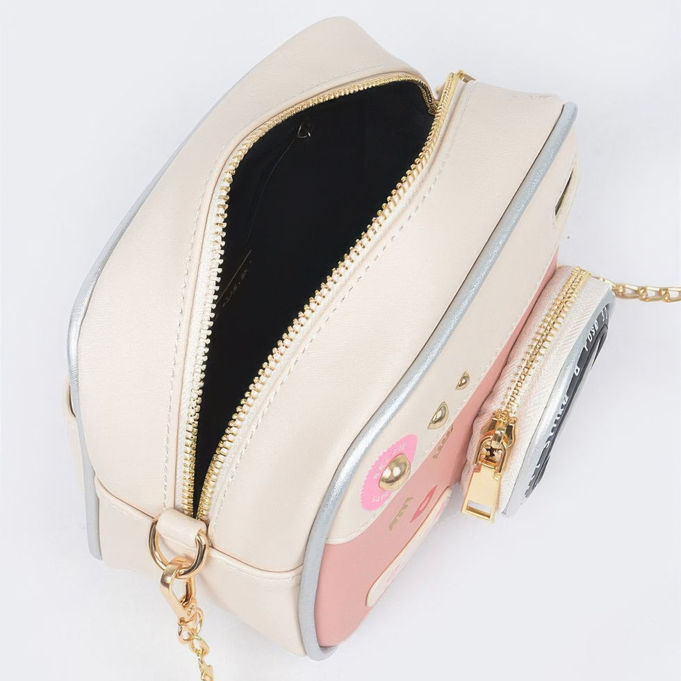 Add a playful twist to your accessories collection with our Camera Inspired Clutch, a chic and unique piece designed to stand out. This eye-catching bag takes inspiration from vintage camera designs, making it the perfect conversation starter and an accessory that blends fun with functionality.
