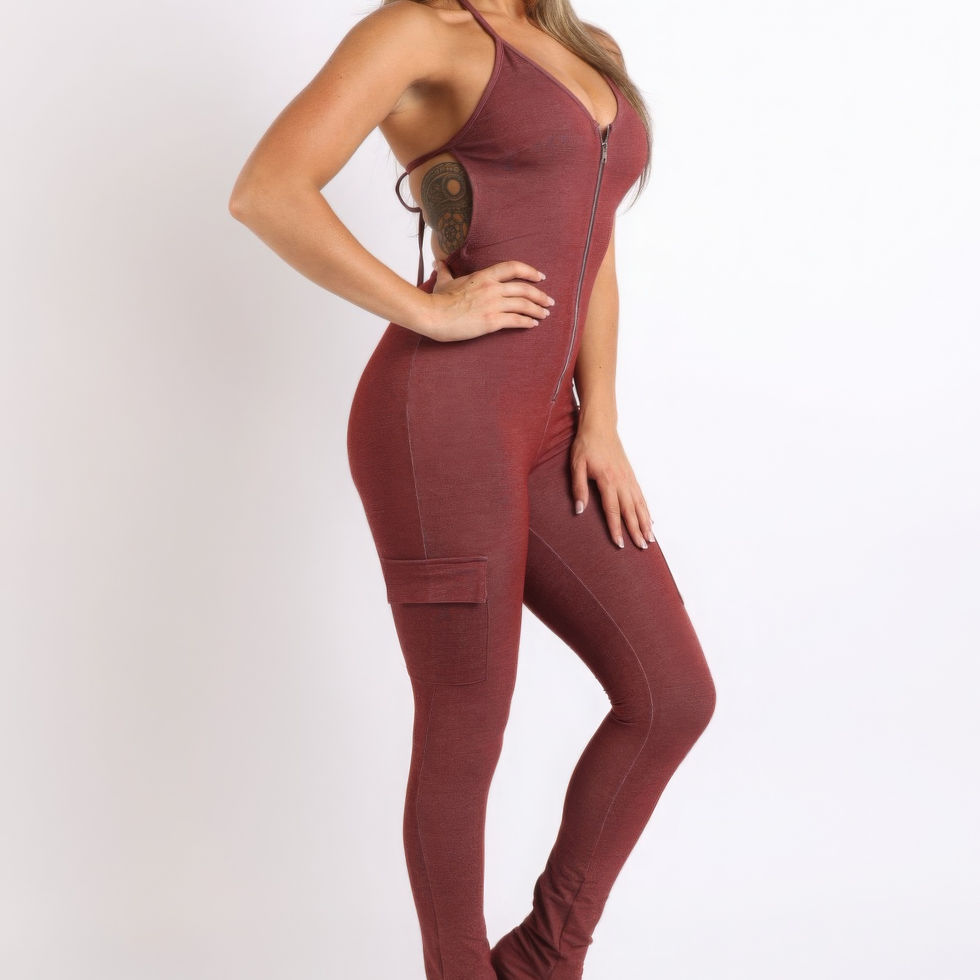 Make a statement with our Cargo Pocket Halter Jumpsuit, combining comfort and style effortlessly. The unique design elements, versatile styling, and the sophisticated Brick Red color set it apart, making it a go-to piece in your casual wardrobe.