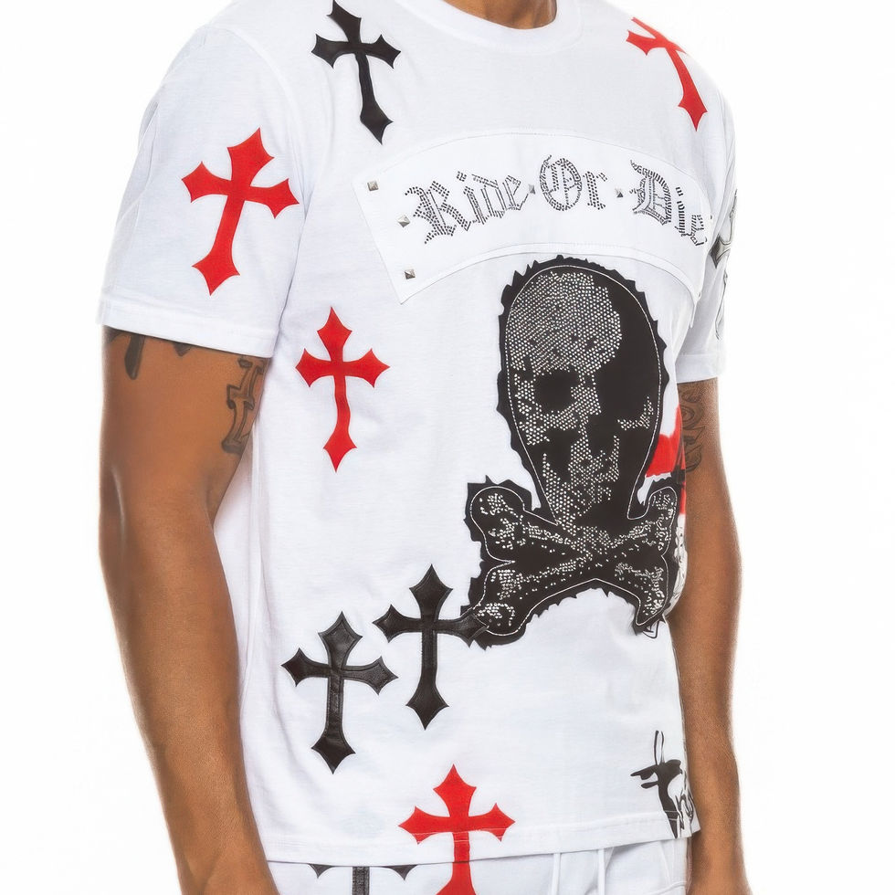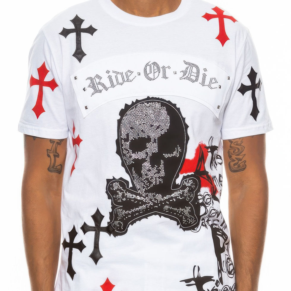 - Quality Craftsmanship: The chrome cross print and bejeweled details are carefully applied to ensure durability, so the t-shirt maintains its bold design after multiple washes.