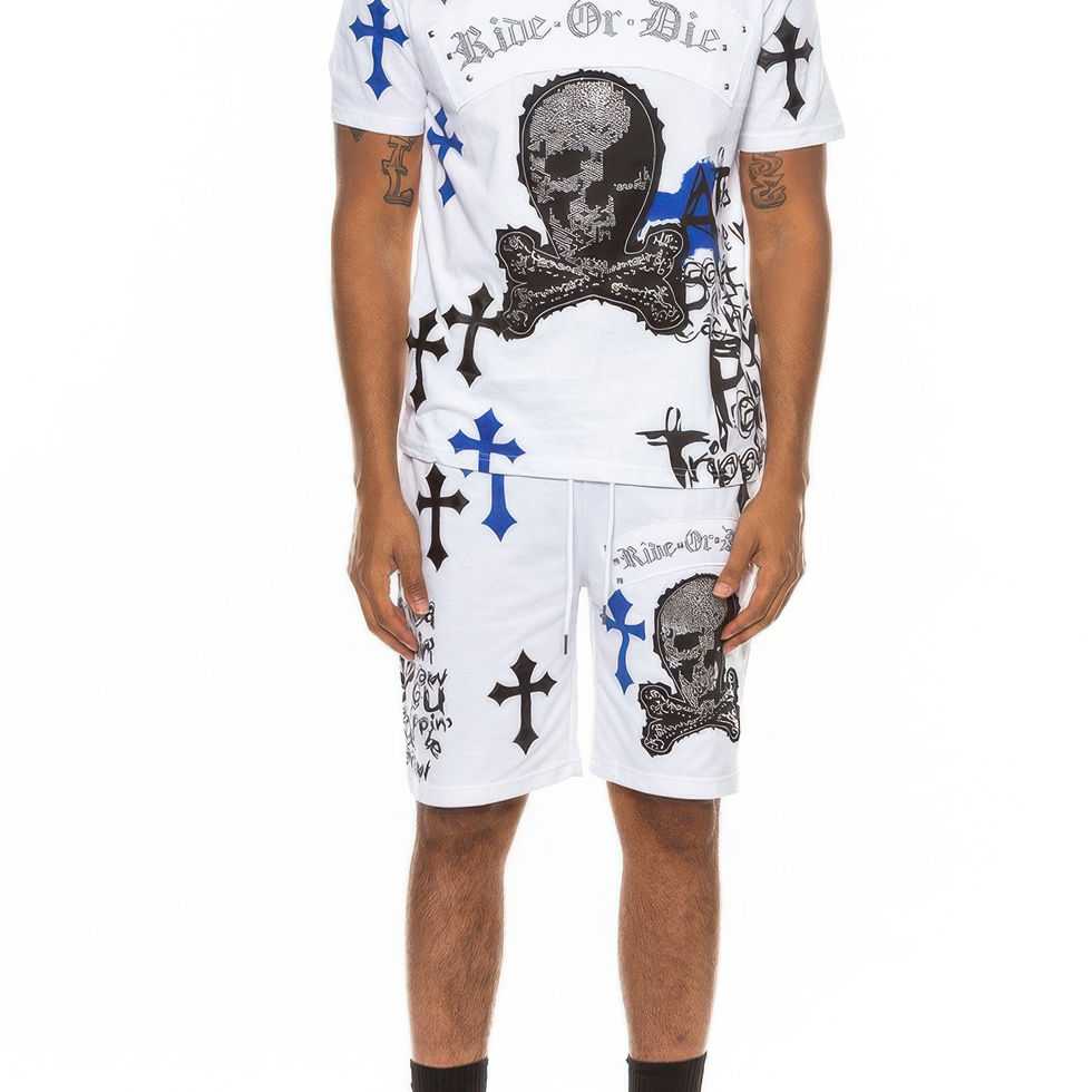 Get ready to look and feel your best with our Cotton Print Chrome Cross T-Shirt and Short Set. Add it to your cart now and enjoy the perfect combination of comfort and style!