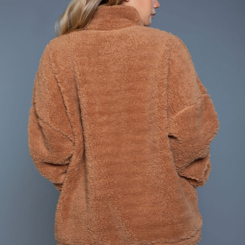 The Daphne Borg Jacket redefines cozy with its plush sherpa fabric and oversized silhouette, making it your go-to outerwear for colder days. Designed with a laid-back yet polished vibe, this jacket effortlessly blends comfort and style. The zip-up front and collared neckline add a touch of structure, while the spacious kangaroo pockets offer both function and warmth. Whether you’re layering it over a casual outfit or heading out for a brisk walk, this jacket wraps you in softness and timeless appeal.
