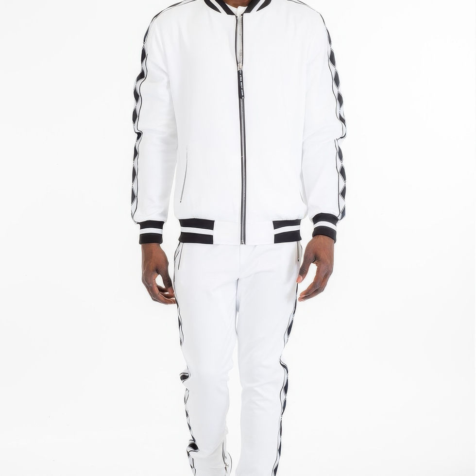 Elevate your athletic and casual wear with our Diamond Tape Track Set. This versatile track suit combines functionality with a modern design, perfect for workouts, running errands, or simply lounging in style.
