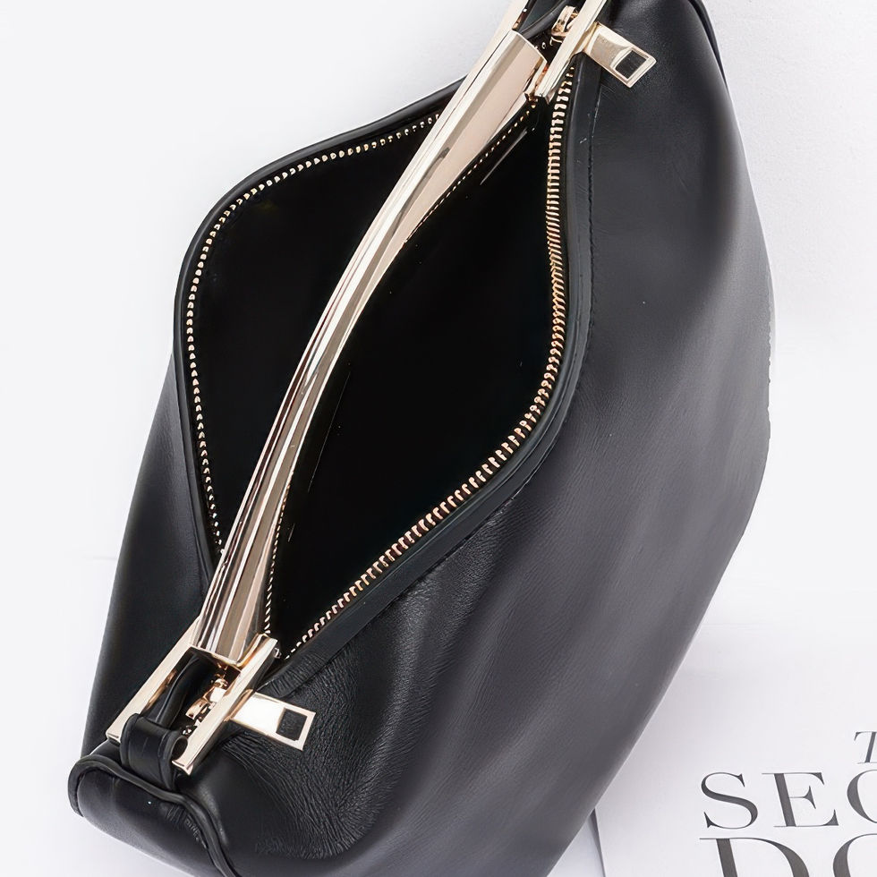 Add a touch of elegance to your accessory collection with the Faux Leather Metal Handle Bag. Order yours now and enjoy the perfect blend of fashion and function!