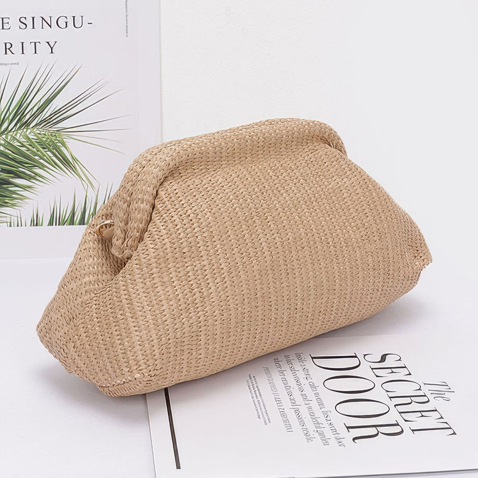 This clutch combines the beauty of natural straw with the sophistication of faux materials, making it a standout piece for any occasion. Its versatile color options and elegant design ensure it can easily match a variety of outfits.