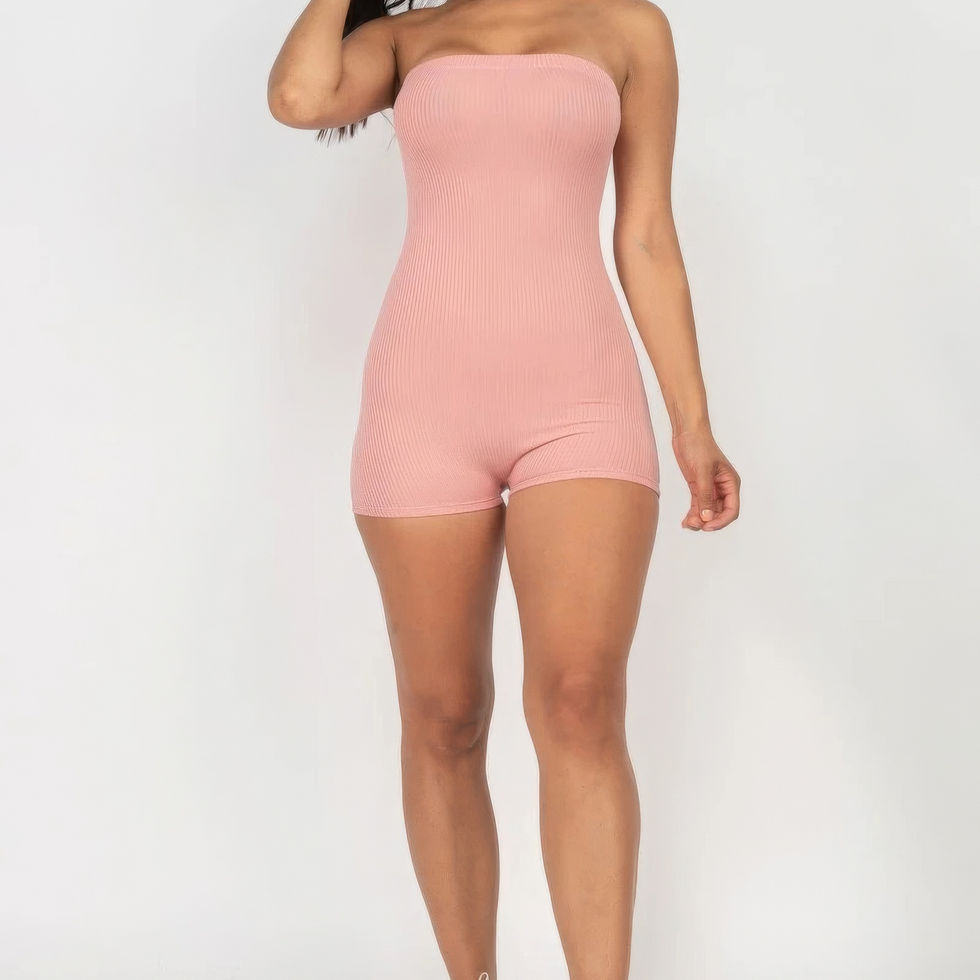 Introducing our Fitted Tube Romper—a chic and stylish piece designed to elevate your wardrobe effortlessly. Crafted with ribbed knit fabric, this strapless romper offers a flattering and comfortable fit, making it a versatile addition to your collection.
