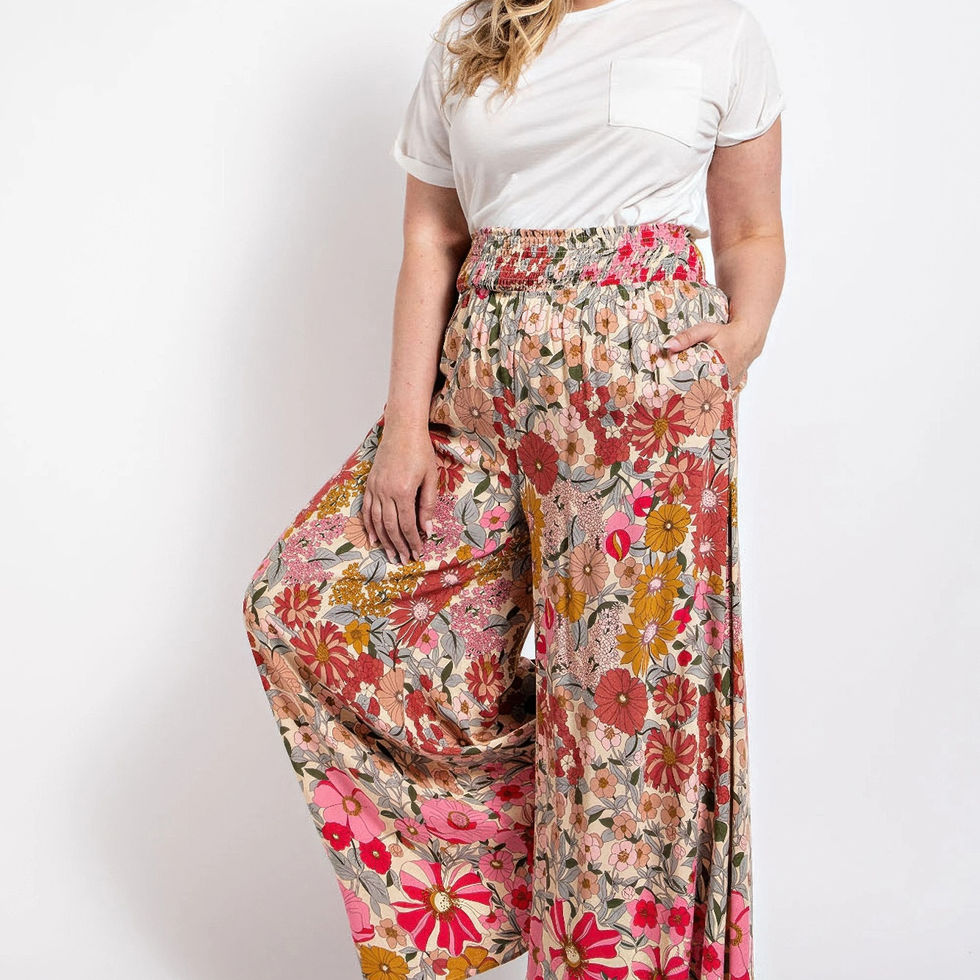 Elevate your wardrobe with our Flare Wide Leg and Waist Smocked Pants with Side Pocket in Rose Pink. Made from 100% Rayon, these pants offer a light, breathable feel that is perfect for any occasion. The smocked waist provides a comfortable, customizable fit, while the wide-leg and flare silhouette adds a chic and relaxed vibe. Plus, the convenient side pocket combines practicality with style.
