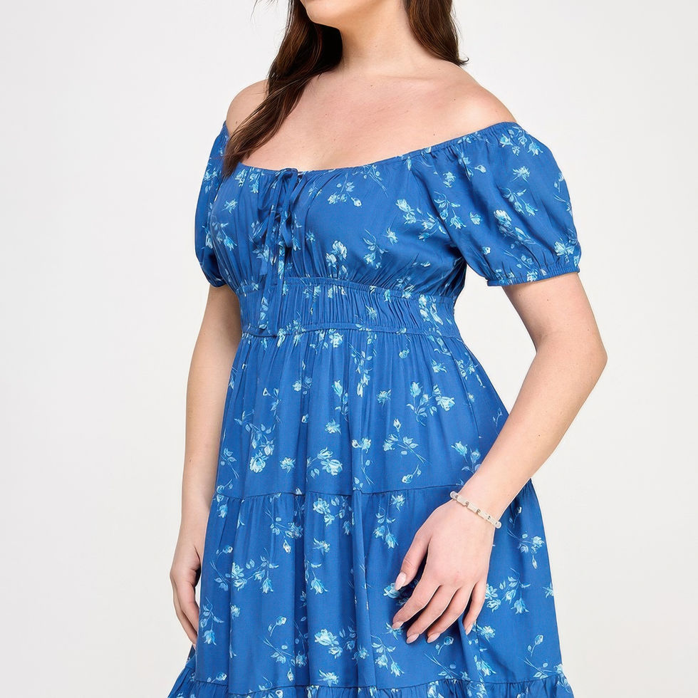 Add the Floral Front-Tie Elastic Waist Ruffle Dress in Blue to your wardrobe today for a perfect mix of comfort, style, and playful elegance!