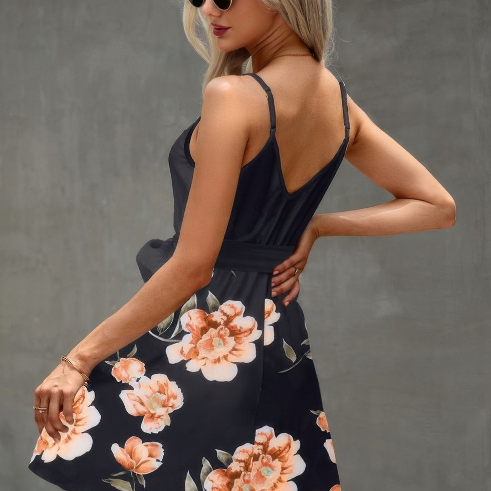Step into sunny days with this floral cami dress, designed with delicate spaghetti straps and a flattering V-neckline. The included belt cinches the waist to create a defined, feminine shape, while the lightweight fabric offers easy movement and all-day comfort. A perfect balance of soft florals and breezy style, this dress is a go-to for warm-weather adventures. Made with a blend of polyester and spandex, it provides just the right amount of stretch and drape. Ideal for vacations, outdoor gatherings, or casual outings, this piece brings a fresh, seasonal feel to your wardrobe.
