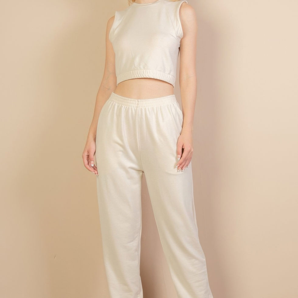 Comfortable All-Day Wear: Our French Terry Elastic Waist Tank Top & Joggers Set is crafted for all-day comfort, allowing you to move freely and relax effortlessly.