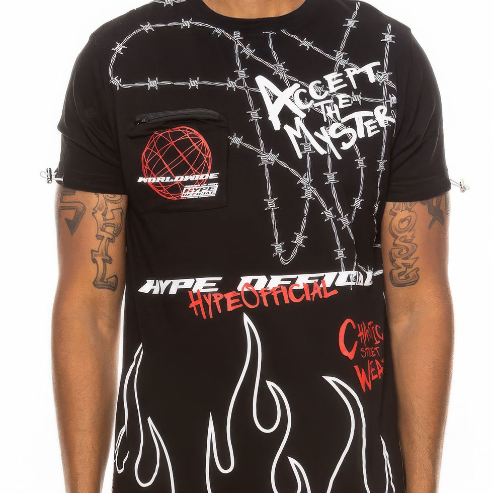 Design: Featuring a bold Hype Official print across the chest and a functional zipper chest pouch, this shirt combines streetwear style with practicality. The zipper chest pouch adds a modern, edgy touch to a classic design.