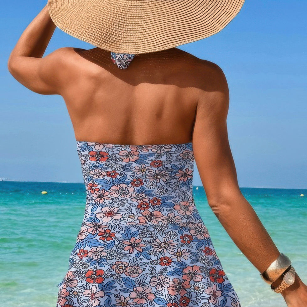 Halter Neck Twisted Tie Knot Front Dress Swimsuit
