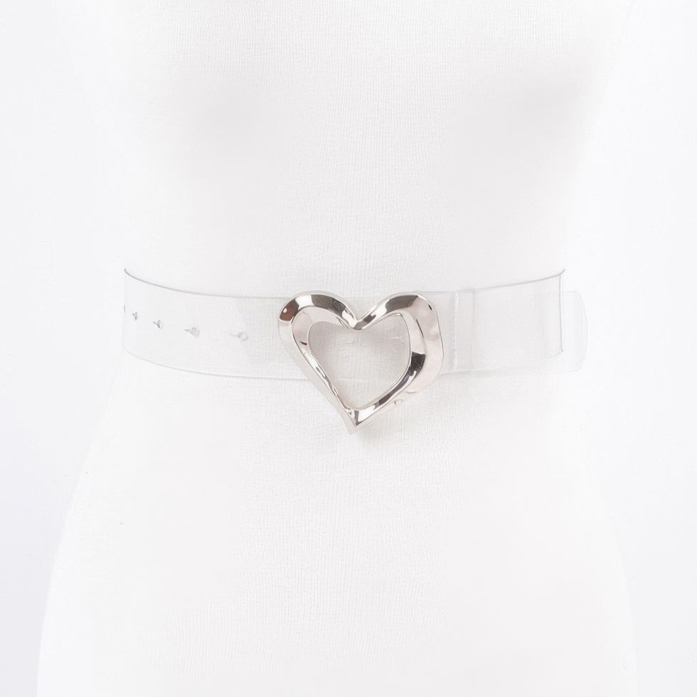 Add a playful yet polished touch to your look with the Heart Shape Metal Buckle Clear Belt. Crafted from sleek, transparent PVC, this standout accessory features a romantic heart-shaped metal buckle that instantly elevates any ensemble. Its modern, minimalist design pairs perfectly with dresses, skirts, or high-waisted jeans, making it a versatile addition to your wardrobe. Feminine and bold, this belt is the ultimate finishing piece for creating eye-catching style.