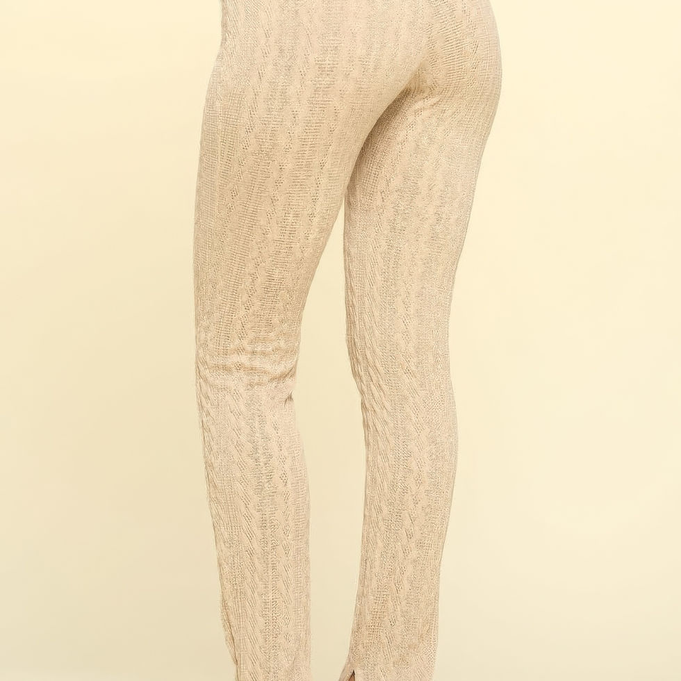 Enhance your wardrobe with our Knit High Rise Leggings, a comfortable and stylish choice available in sizes Small (S), Medium (M), and Large (L). Meticulously crafted, these leggings feature a solid knit design, a flattering high rise fit, and a unique slit hem detail for a touch of sophistication.