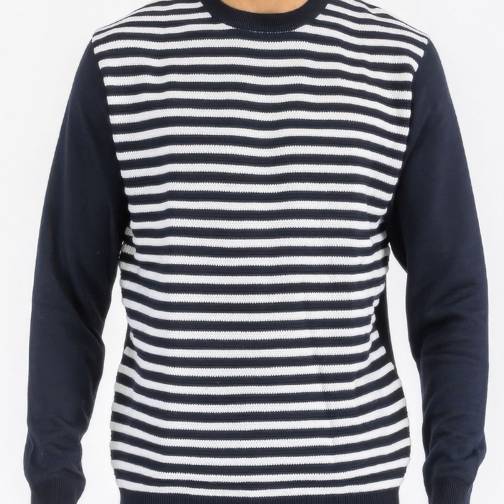 Add the Knitted Round Neck Striped Sweater to your cart now and enjoy the perfect combination of style, comfort, and durability!