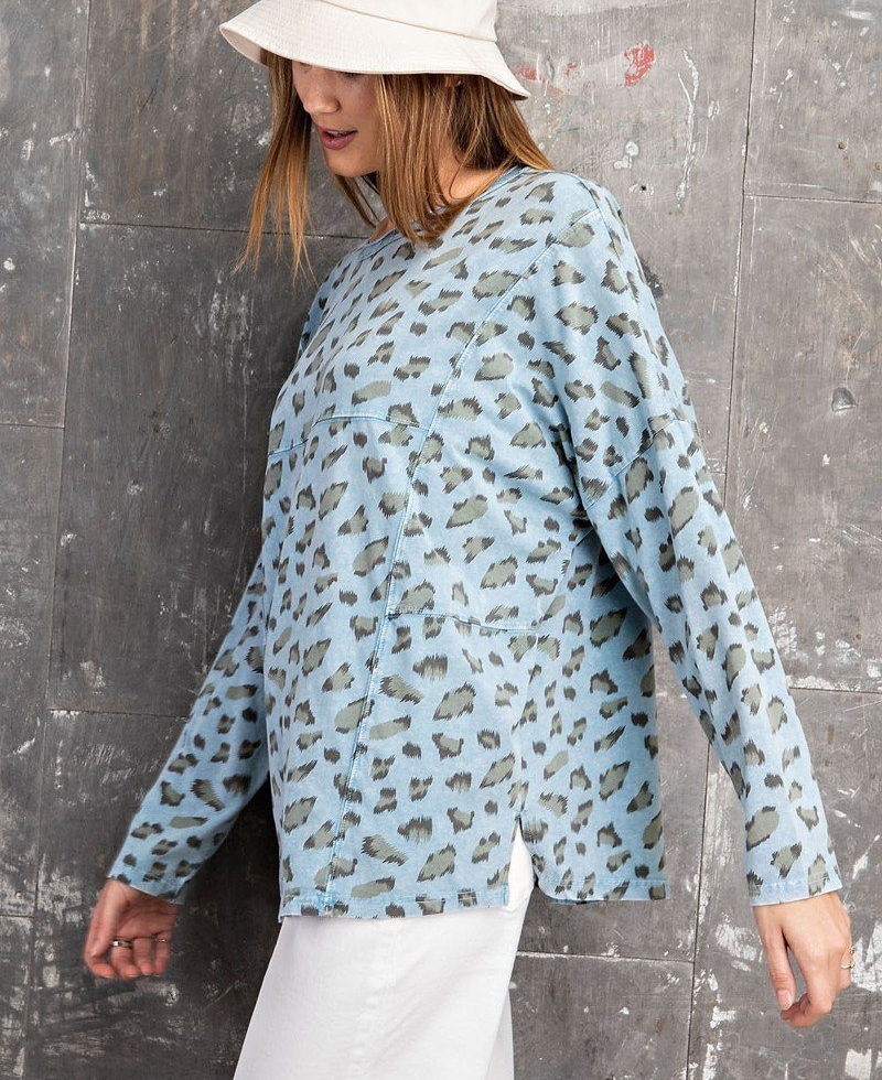 Leopard Printed Garment Dye Loose Fit Knit Top
