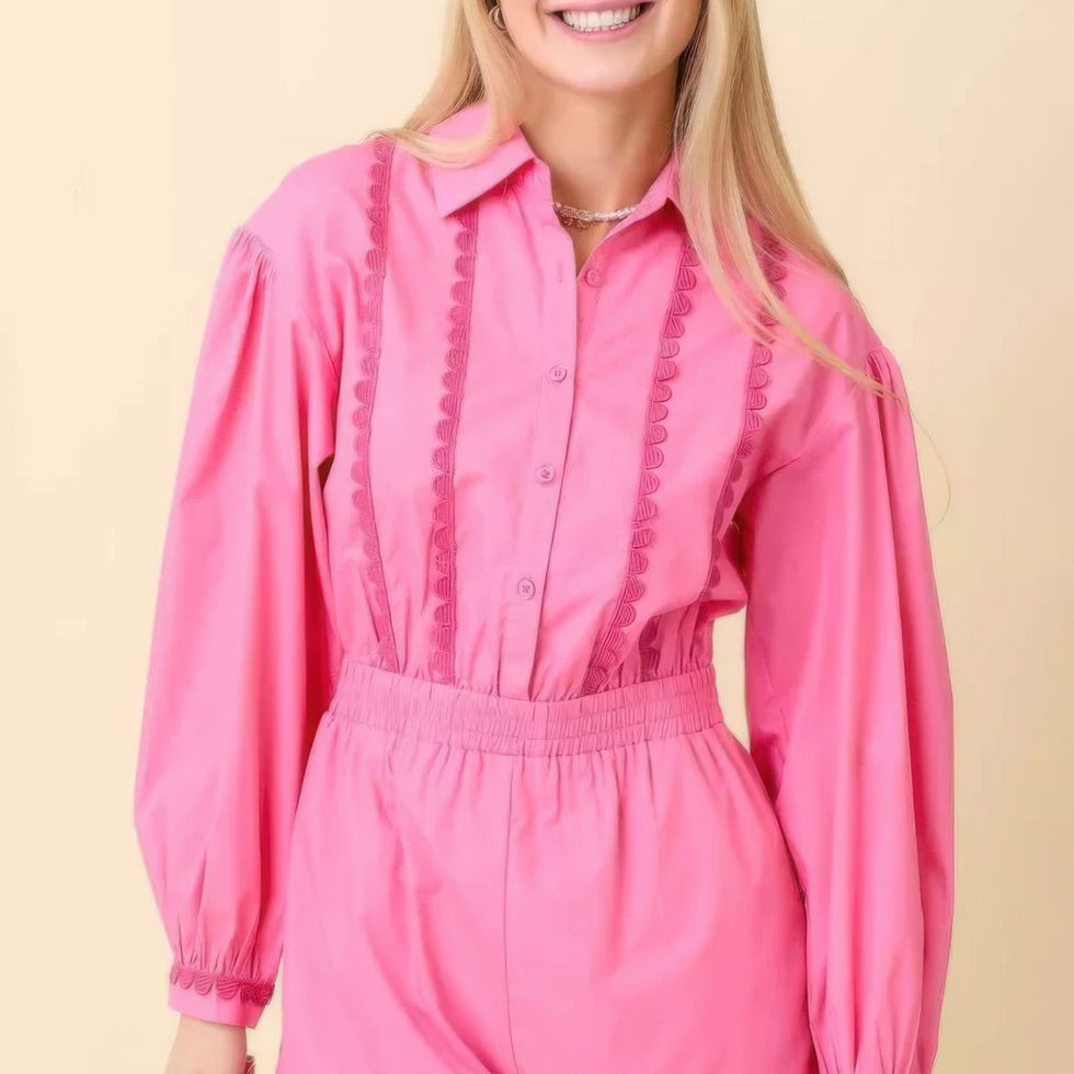 The Long Sleeve Romper with Contrasting Scallop Lace brings a sophisticated touch to your casual wardrobe. Crafted from a comfortable blend of 80% polyester and 20% cotton, this romper features delicate scallop lace that contrasts beautifully against the fabric, creating an eye-catching detail. The long sleeves offer a hint of coverage, while the tailored fit flatters your shape effortlessly. This versatile piece is perfect for weekend outings, daytime gatherings, or date nights, giving you a polished yet relaxed look.