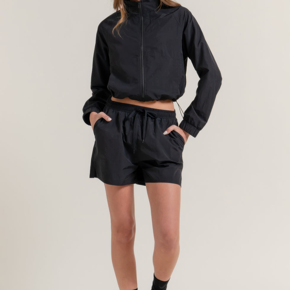 Stay light and ready for anything in this Long Sleeve Crop Activewear Anorak Jacket. Designed with a modern cropped silhouette, this jacket blends utility and style for a bold, athletic edge. The lightweight nylon fabric offers wind resistance and a smooth, structured feel—perfect for on-the-go layering. Featuring long sleeves and a relaxed fit through the body, it's ideal for workouts, travel, or everyday wear. Whether thrown over activewear or paired with street-ready pieces, this anorak delivers a confident, sporty finish.