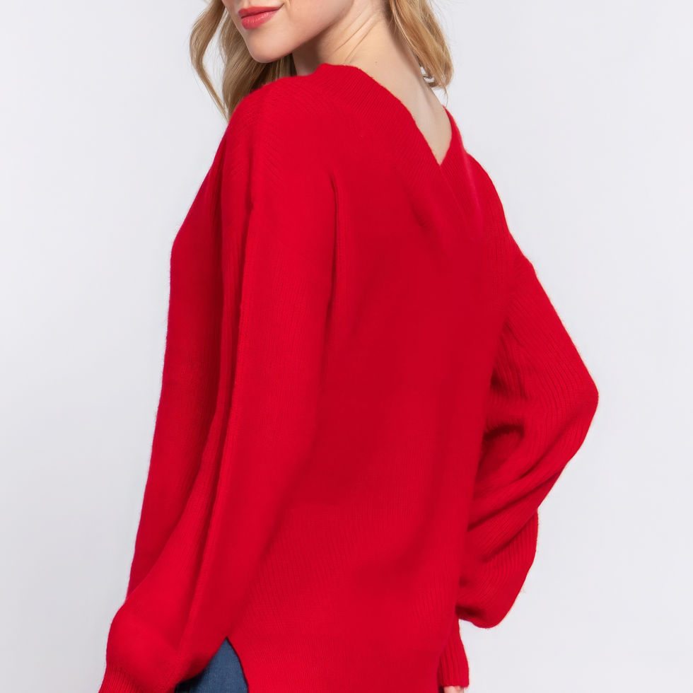 Add our Long Sleeve Double V-Neck Sweater in Red to your cart now and elevate your wardrobe with timeless comfort and style!