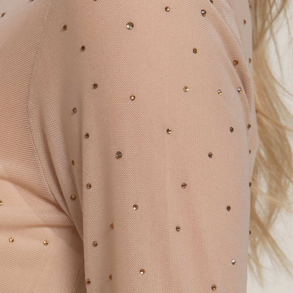 Elevate your wardrobe with our Long Sleeve Round Neck Mesh with Rhinestone Top, a stylish blend of sophistication and flair. Crafted from a high-quality fabric that ensures both comfort and durability, this top is perfect for making a statement.
