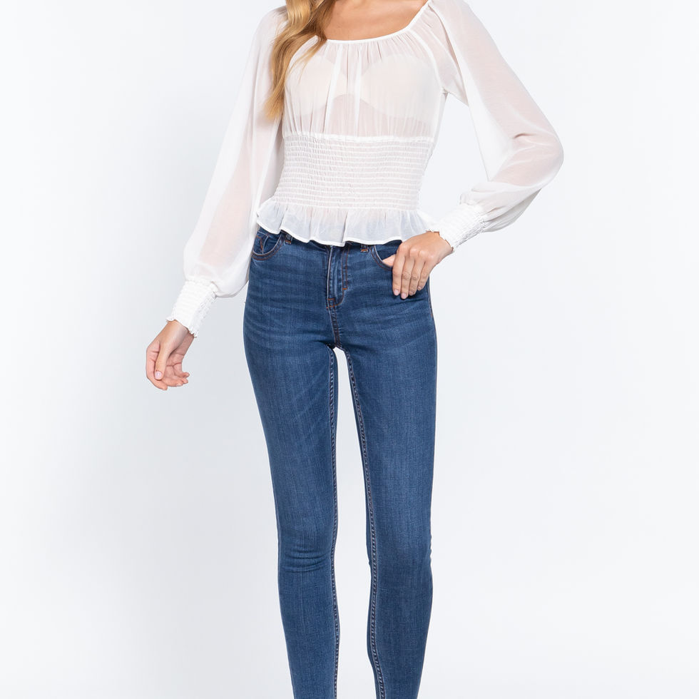 1. "Absolutely love my Long Sleeve Smocked Chiffon Top! The Off White color is so chic." - A. S.