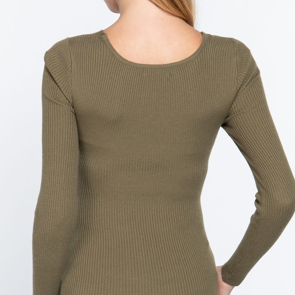 Add the Long Sleeve V-Neck Front Bust Twisted Detail Sweater Top in French Olive to your cart now and redefine your style with this chic and comfortable piece!