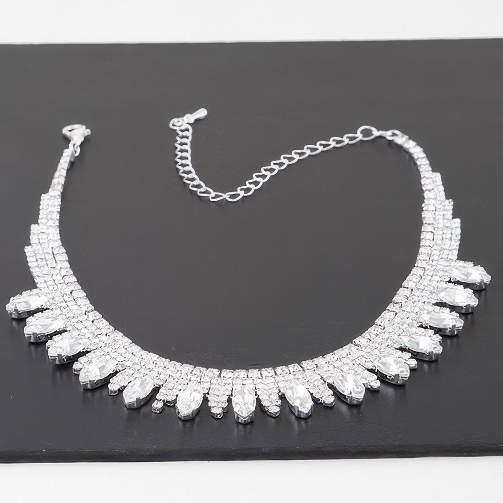 Make an unforgettable impression with the Luxury Rhinestone Drop Choker Necklace, a statement piece designed to captivate. Measuring approximately 12 inches, this elegant choker sits high on the neckline and features a dramatic drop adorned with radiant rhinestones. Its intricate design and brilliant sparkle bring an air of sophistication, perfect for evening events, parties, or elevated everyday wear. The close fit highlights the neckline, while the shimmering stones add bold glamour. Crafted to combine elegance with edge, this choker is the ultimate accessory for those who love to shine.
