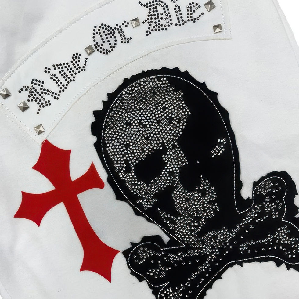 Make a bold statement with the Men's Chrome Cross Skull Shorts—designed for standout style and everyday comfort. These sweat shorts feature eye-catching chrome cross and skull designs, complete with jewel embellishments and sewn-on text detailing for added dimension. Crafted from a soft and durable blend of 60% cotton and 40% polyester, they offer breathable wear with a structured feel. Perfect for streetwear-inspired outfits or relaxed weekend looks, these shorts combine edgy graphics with functional comfort.