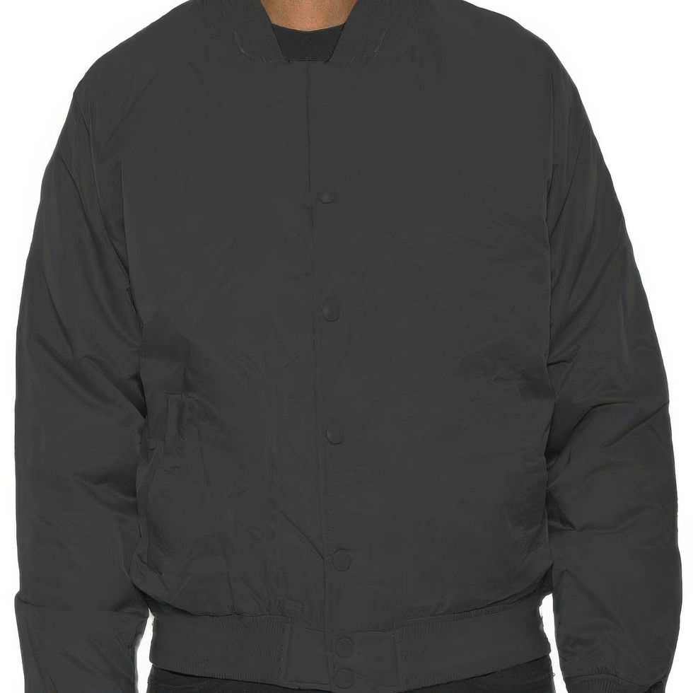 Design: Featuring a classic bomber jacket design with a snap button closure, striped collar detail, and standard pockets for functionality and style.