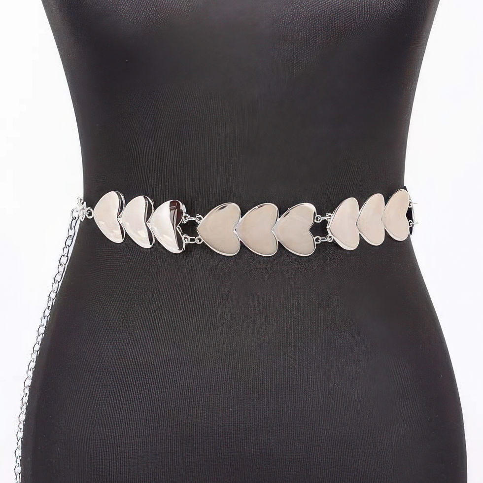 This belt offers the perfect combination of romance and edge. Its unique heart-shaped charms add a fun, playful element to your wardrobe while the metal chain design brings a touch of sophistication. It's the perfect accessory to express your love for fashion in a chic way.