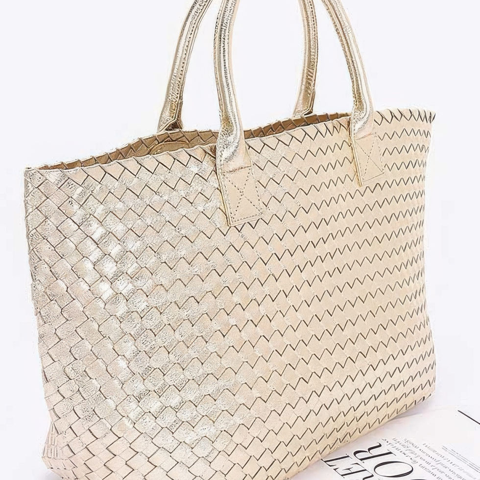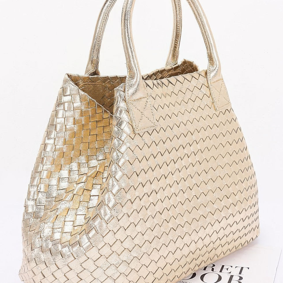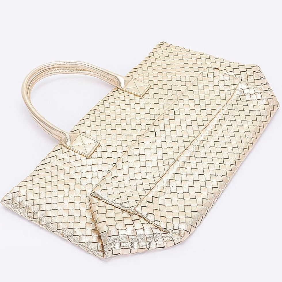 Elevate your accessory game with the Metallic Faux Leather Braided Tote Bag—a standout piece that blends texture, shine, and versatility. Crafted from high-quality polyurethane, this spacious tote features a beautifully braided exterior with a metallic finish that catches the light effortlessly. Designed to hold your daily essentials and more, it includes a matching purse for added convenience and style. Whether you're heading to work, shopping, or a weekend getaway, this tote delivers fashion-forward functionality with a polished edge.
