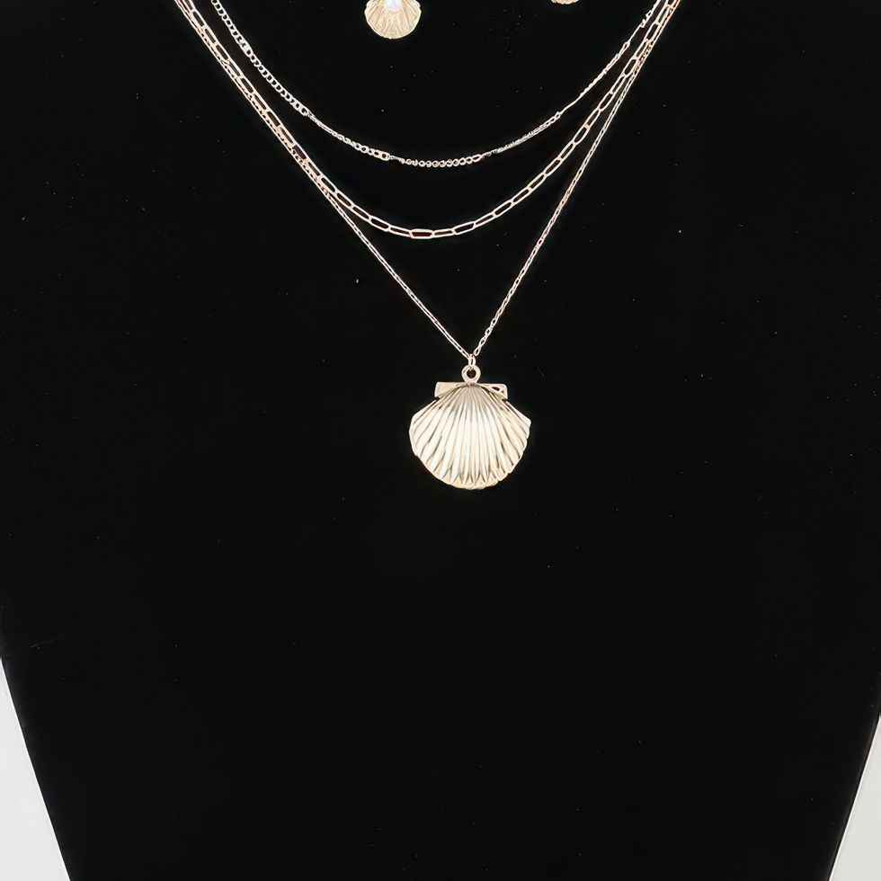 Celebrate coastal elegance with the Multi Seashell Charm Drop Necklace. Featuring a gold-tone chain with charming faux pearl and seashell accents, this playful yet sophisticated design is perfect for adding a breezy, ocean-inspired touch to any outfit.