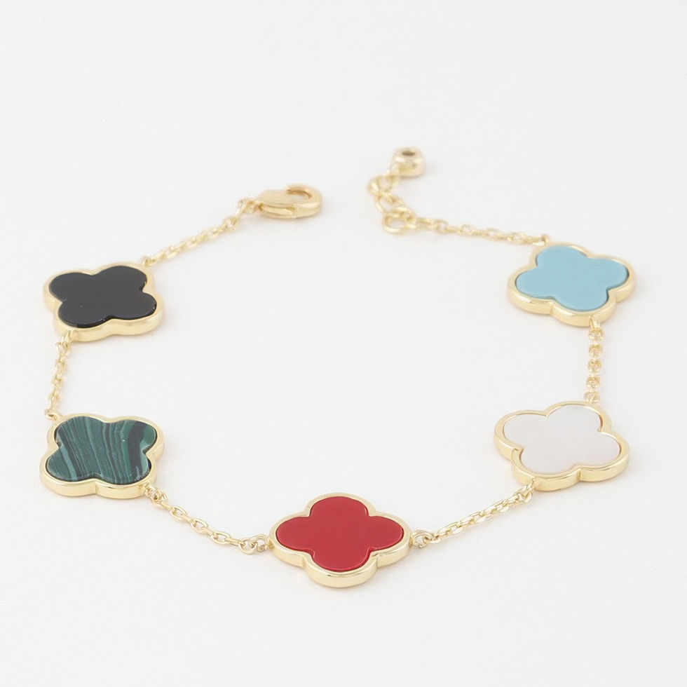 Design: Adorned with clover-shaped charms and multi-colored stones, this bracelet brings a unique touch of elegance and luck to your look.