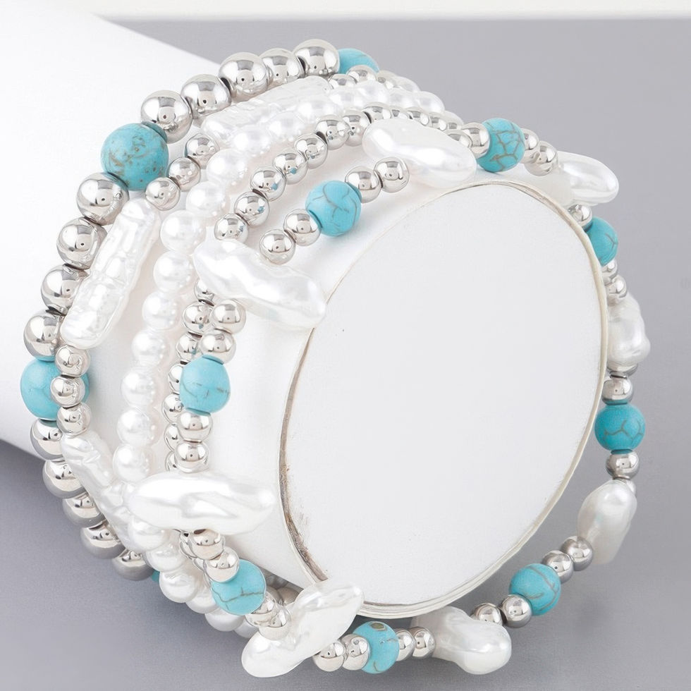 The mix of turquoise stones and pearls creates a perfect balance of earthy beauty and sophisticated elegance. The gold or silver-plated finish enhances the luxurious feel, making this bracelet a versatile addition to your jewelry collection.