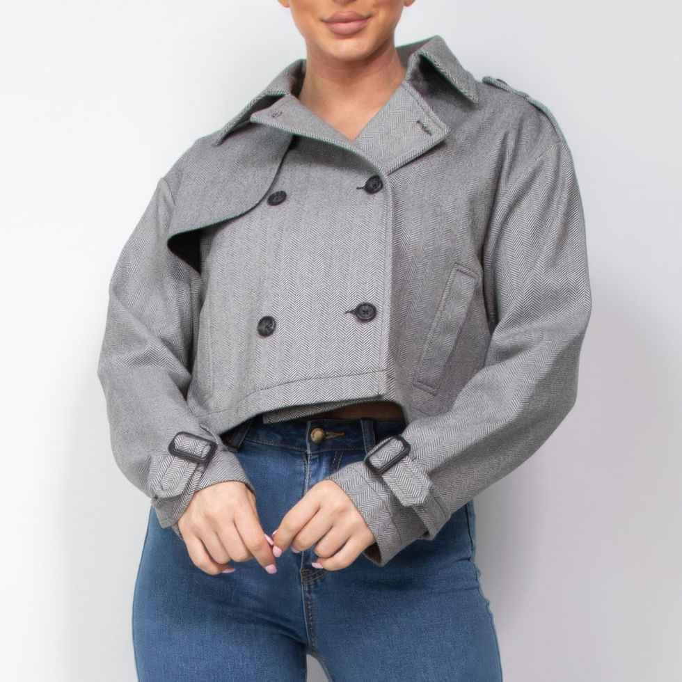 Enhance your wardrobe with our Notch Buckled Sleeve Crop Trench Coat. Add it to your cart now and experience timeless style with a modern twist!