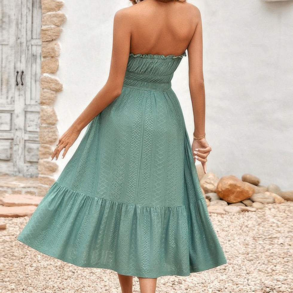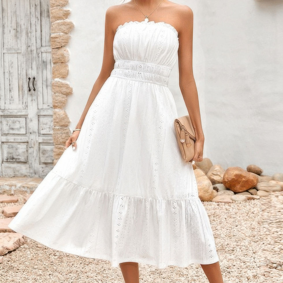 - Off Shoulder Lace Trim Strapless Tube A Line Dress for added style and flair