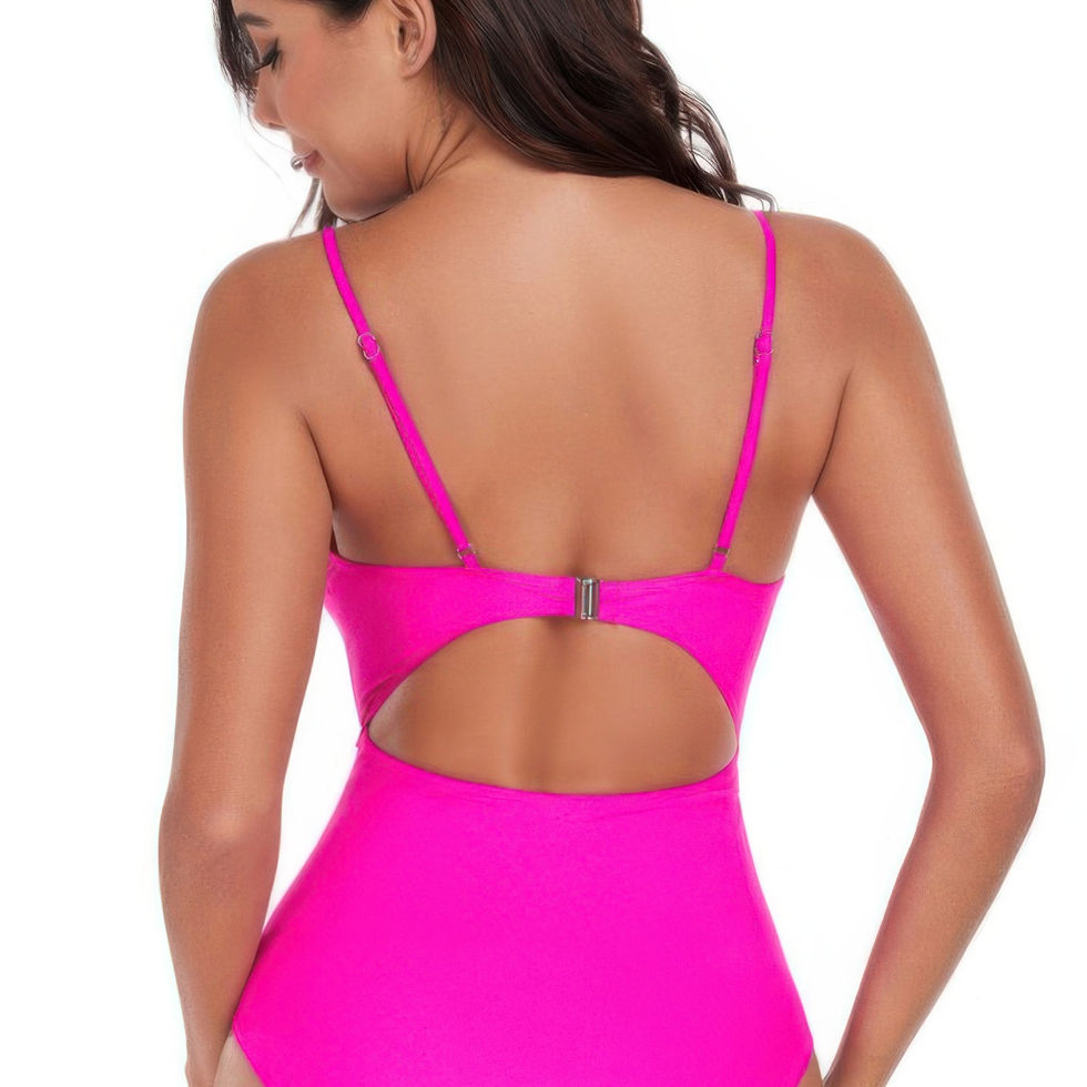 Make a statement at the beach or poolside in this sleek one-piece swimsuit featuring a bold cut-out design and flattering ruched strap detailing. Crafted from a smooth, stretchy blend of nylon and spandex, it offers a supportive and comfortable fit that moves with you. The solid color adds timeless appeal, while the asymmetrical cut-out adds a modern twist. Perfect for lounging, swimming, or enjoying a tropical getaway, this suit combines confidence and style in one standout silhouette. Whether you're headed to the coast or relaxing by the pool, this piece delivers effortless flair and function.