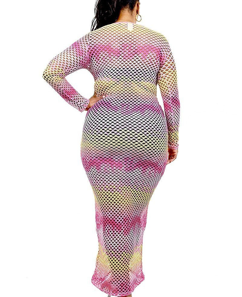• Captivating and Comfortable: The Plus See-through Gradient Fishnet Overlay Dress is designed to make a statement with its wild stripe gradient print while ensuring comfort with its stretchy Rayon fabric and stylish details.
