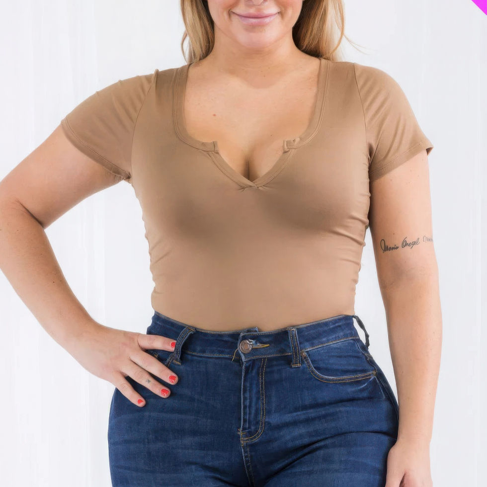 Elevate your everyday wardrobe with the Plus Size Casual Split Neck Solid Short Sleeve Bodysuit in Coca Mocha. Order now to experience comfort and style!