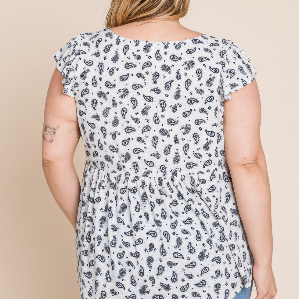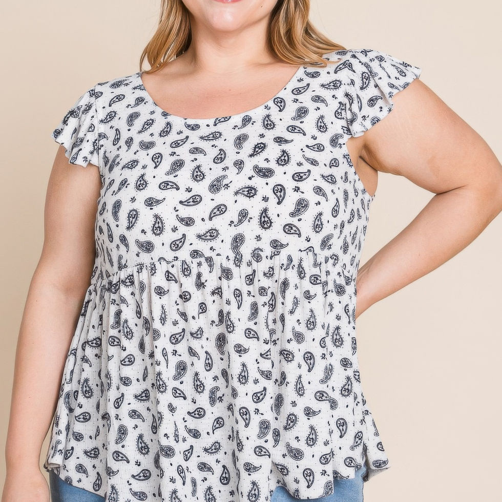 Add the Plus Size Paisley Flutter Sleeves Top in Ivory to your collection and enjoy effortless style with a touch of bohemian flair!
